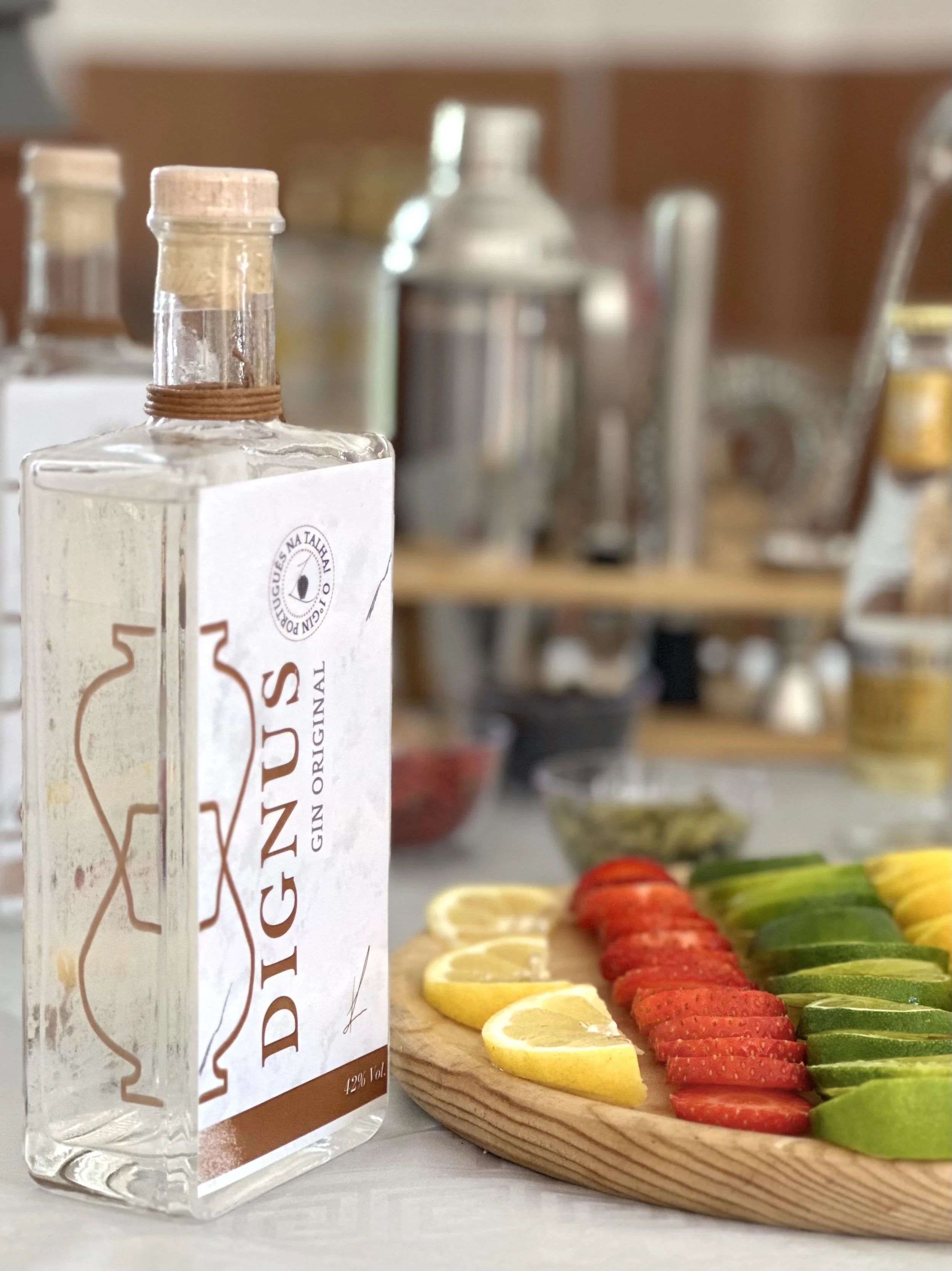 DIGNUS GIN é inspirado na Tradição Alentejana, consiste numa junção de processos tradicionais, nomeadamente, destilação em Alambique Tradicional e harmonização na tradicional Talha de Barro.
